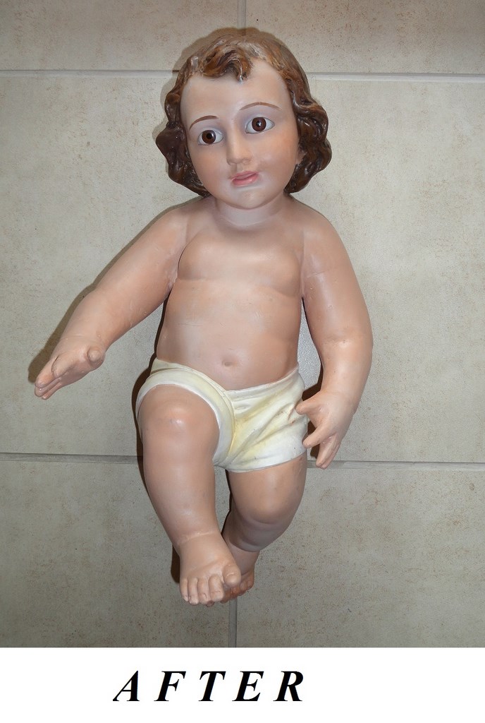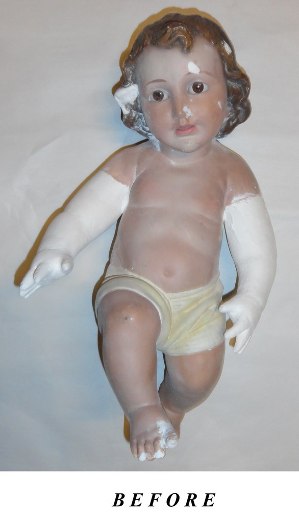 The arms of Baby jesus (which disappeared) have been restored